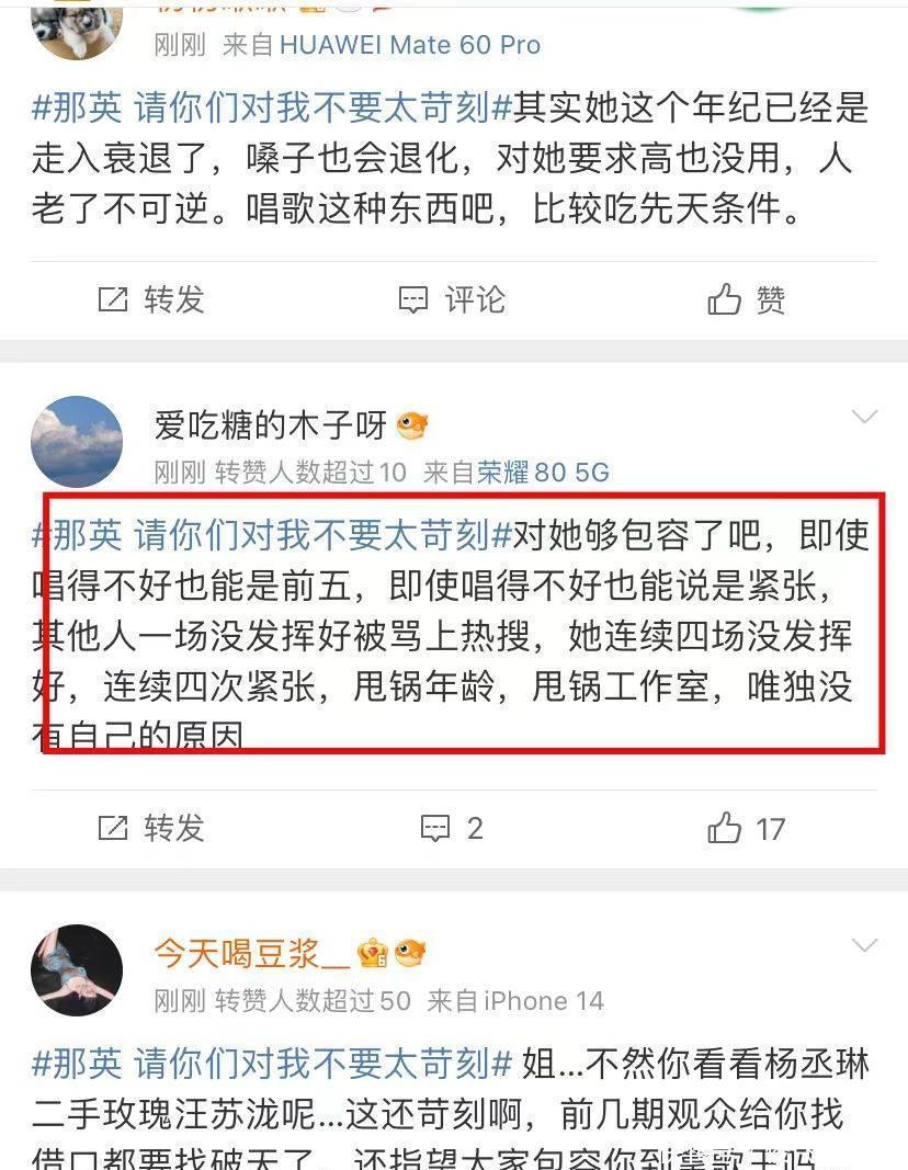 也有东谈主以为公共根柢莫得尖刻她,一连四期唱得不尽东谈认识,而且都有问题,公共都有目共睹,甩锅年纪,甩锅他东谈主,只消莫得自我检查反想。